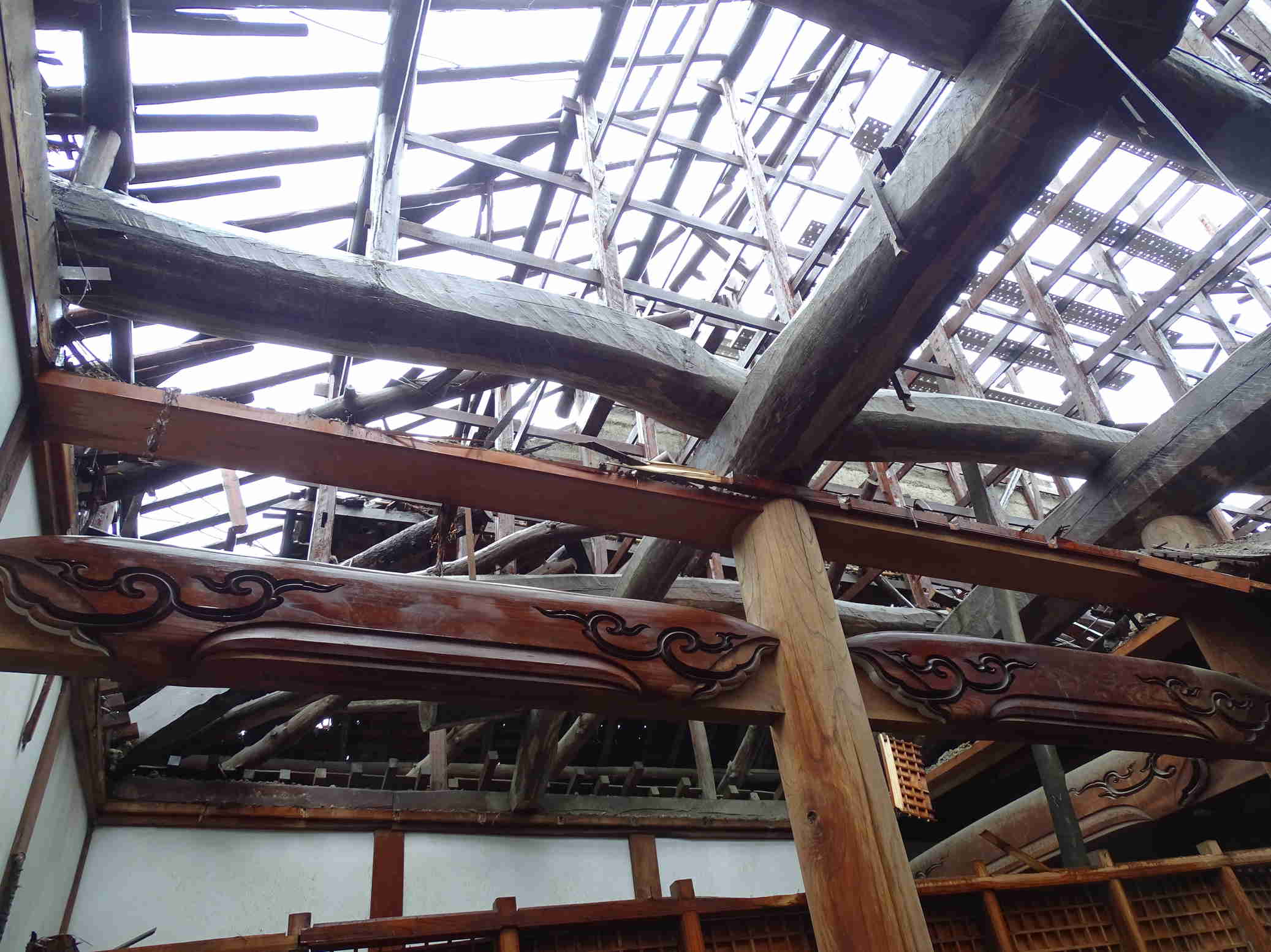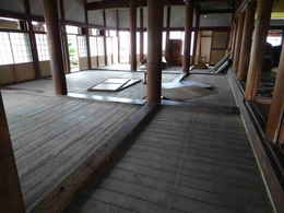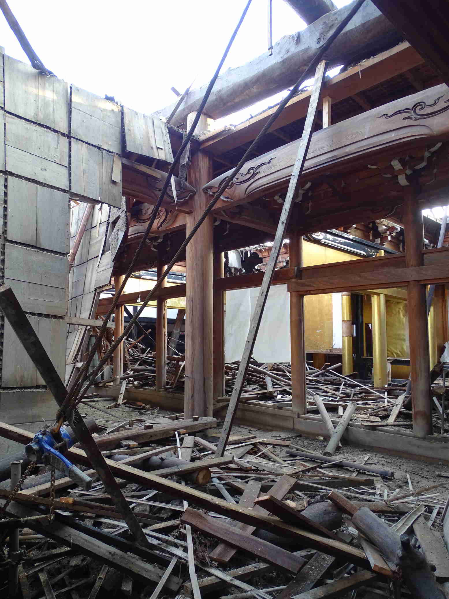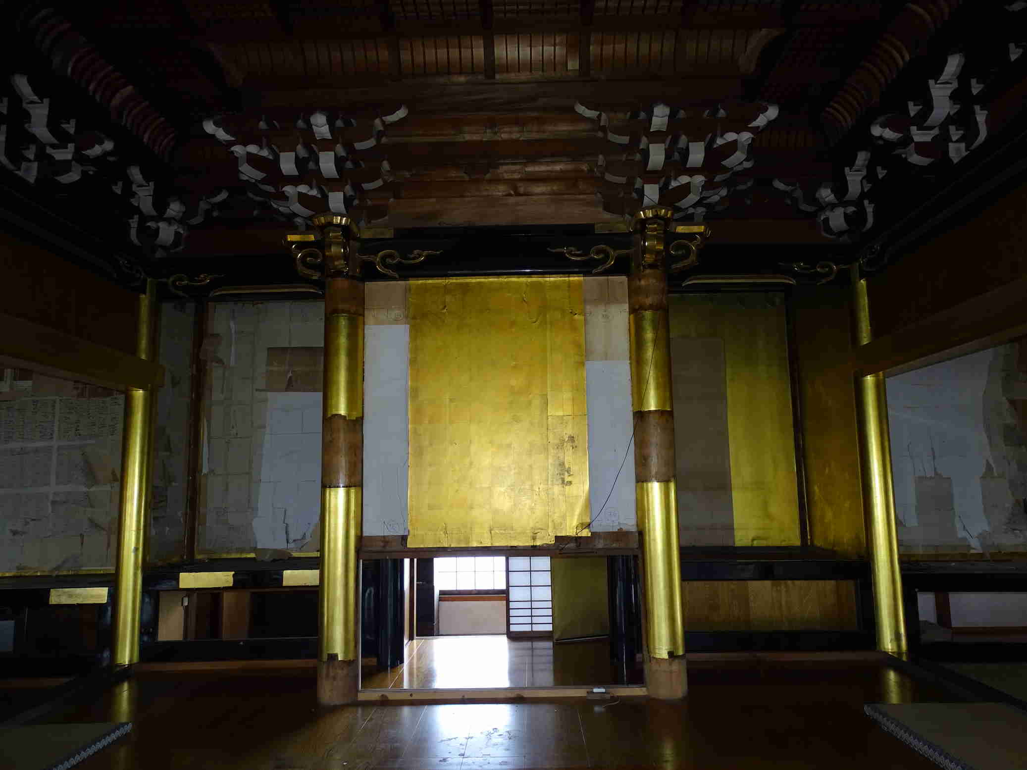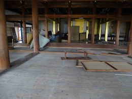 必要な仏具などはすべてお庫裏へ移動し、解体を待つだけの旧本堂。